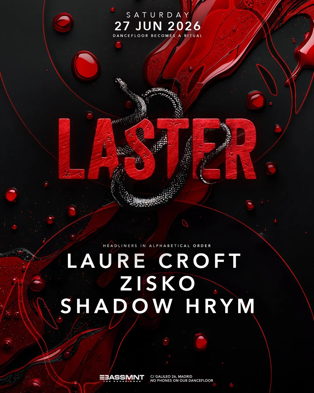 lASTER CLUB LAURE CROFTZISKOSHADOW HRYMFrom: Sat. Jun. 27, 2026 23:45To: Sun. Jun. 28 2026 06:00 TICKETS TICKETS